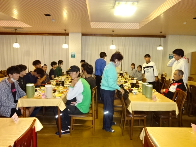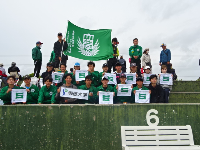 | 会場にはたくさんの父母の方々が応援に駆けつけてくれました 中でも遠方 鹿児島から一週間店をお休みして(ラーメン店経営)駆け付けた4年栗山怜大君の御父上 カメラを持つ手に汗がにじむ 栗山怜大(4年ネットワーク情報学部・鹿児島商業出身) 三浦瑠斗(3年主将ネットワーク情報学部・佼成学園高校出身) 主将チームしっかりと責任を果たした 全勝賞❣ |