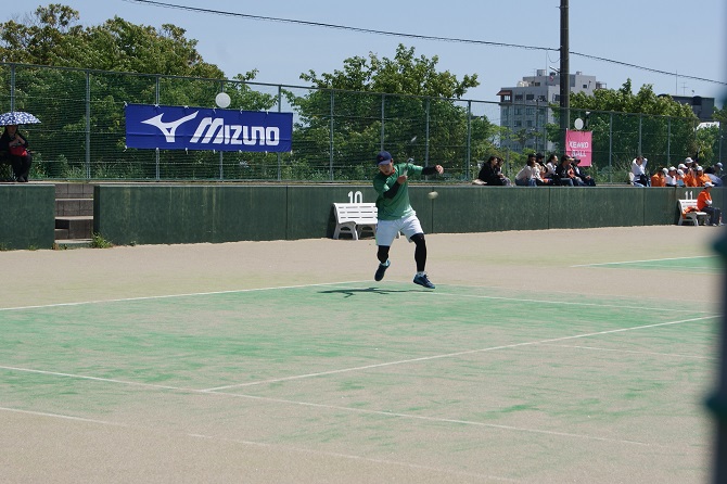 栗山主将(鹿児島商業出身) 強烈なドライブボールとロビングのコンビネーションが武器 今年の鹿児島国体候補選手でもある ソフトテニスとラーメンをこよなく愛する御父上ご夫婦もスタンドで参戦(らーめん専門くりやま経営) | |