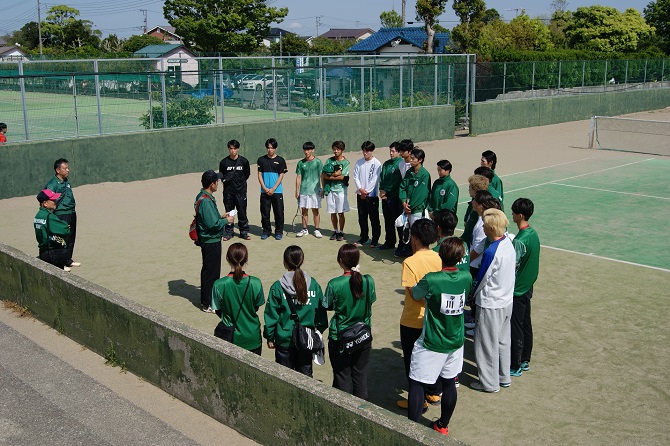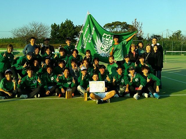 | | 主将 三浦(3年佼成学園高校出身) 士気高くチームをよくまとめた全勝 鈴木(2年木更津総合高校出身) ダブルス2勝シングル3勝全勝 |