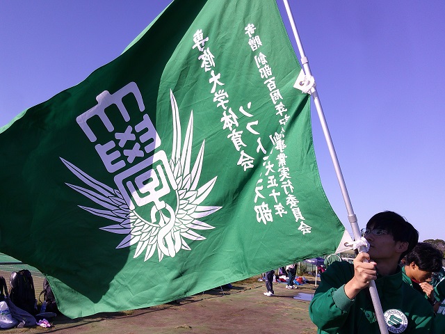 100周年記念で部旗を新調 優勝を胸に秘め臨んだ春季リーグ戦 曇天風強し | |