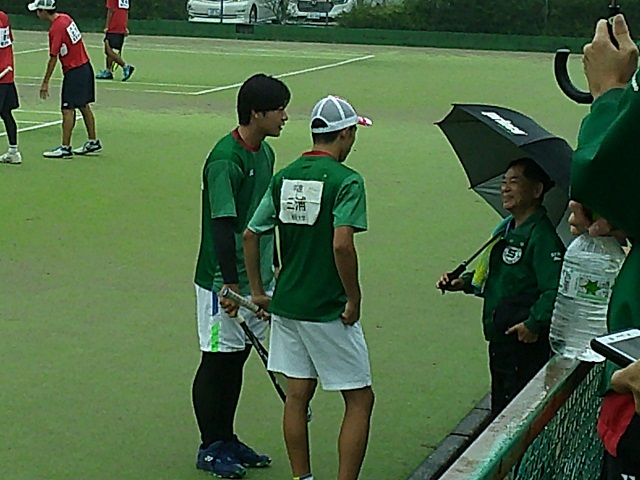 | 9月10日沖縄インカレ開会式 11日選手権 我校キャプテンチーム 栗山・三浦 上位進出を期待したがベスト128で敗退 14日学校対抗台風の影響でドームにて 1回戦3-2桃山学院大学に辛勝 2回戦 3-1 星城大学(愛知) 3回戦 0-3 中央大学 1番鈴木(2年木更津総合高校出身)市川(1年敬愛学園出身)ファイルなるまで縺れ惜敗 2番岩田(1年専大附属高校出身)熊木(3年宇都宮短大付属出身)岩田は昨年国体東京チームメンバー今後の成長に期待熊木はプレイングマネージャーとしてしっかり仕事をしてくれた 3番栗山(4年鹿児島商業出身)昨年鹿児島国体メンバー三浦(3年佼成学園高校出身)キャプテン我校エース踏んばり切れず敗退 学校対抗入賞の夢は断たれた 残念 16本 |