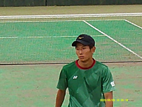 | シングルを任せた 鈴木郁哉(2年法学部・木更津総合高校出身)3番手シングルスリーグ戦の要 頼んだ!鈴木! |